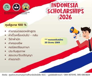 ทุนการศึกษาประเทศอินโดนีเซีย 2026 29 มกราคม 2026อินโดนีเซียคอนเนอร์ข่าวประชาสัมพันธ์ จำนวนผู้เข้าชม : 48 ทุนเรียนฟรี สำหรับนักเรียนที่สนใจสามารถมาติดต่อที่ห้องอินโดนีเซีย คอนเนอร์ ตั้งแต่วันนี้ จนถึงเดือนกุม๓าพันธ์นี้