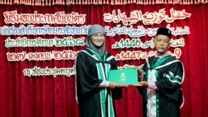 วันนี้ (27 เมษายน 2569) เวลา 09.00 น. ณ ห้องประชุมดาวูดคอนเฟอร์เรนซ์ โรงเรียนอัตตัรกียะห์อิสลามียะห์ ได้จัดพิธีมอบประกาศนียบัตรแก่นักเรียนผู้สำเร็จการศึกษาระดับซานาวีย์ ประจำปีการศึกษา 2568 โดยได้รับเกียรติจาก อาจารย์ไพศาล ตอยิบ ผู้รับใบอนุญาตและผู้จัดการ เป็นประธานในพิธี พร้อมด้วยคณะผู้บริหารและคณาจารย์ร่วมแสดงความยินดี